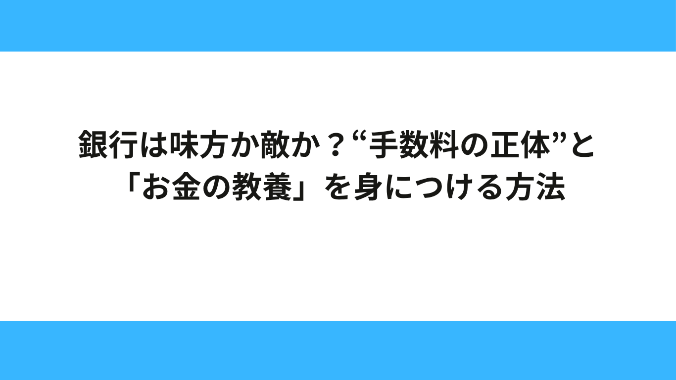 銀行は味方か敵か?“手数料の正体”と「お金の教養」を身につける方法